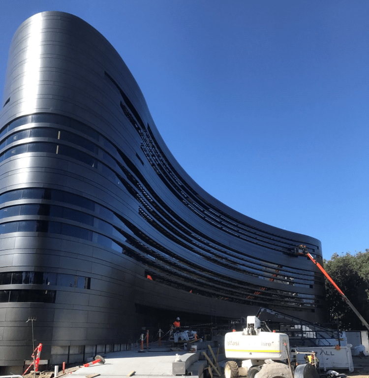 This award winning facade had over two thousand site measured curved panels each with a different radius due to its sweeping and tilting main elevation. Delivered on time with an impeccable finish with the facade valued at $1.5m